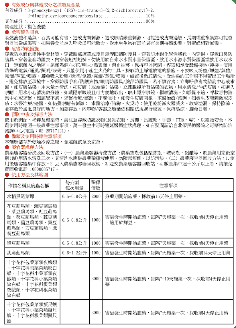 Previous Product Next Product 獨一靈百滅寧 乳劑 (EC) 10% 作用機制:殺蟲劑 3A 分類: I-殺蟲劑(INSECTICIDE) 標籤: 正農產品 描述 描述 相關商品 Quick View Quick ViewI-殺蟲劑(INSECTICIDE)一定好查看內容 Quick View Quick ViewI-殺蟲劑(INSECTICIDE)雙禧查看內容 Quick View Quick ViewI-殺蟲劑(INSECTICIDE)固田園查看內容
